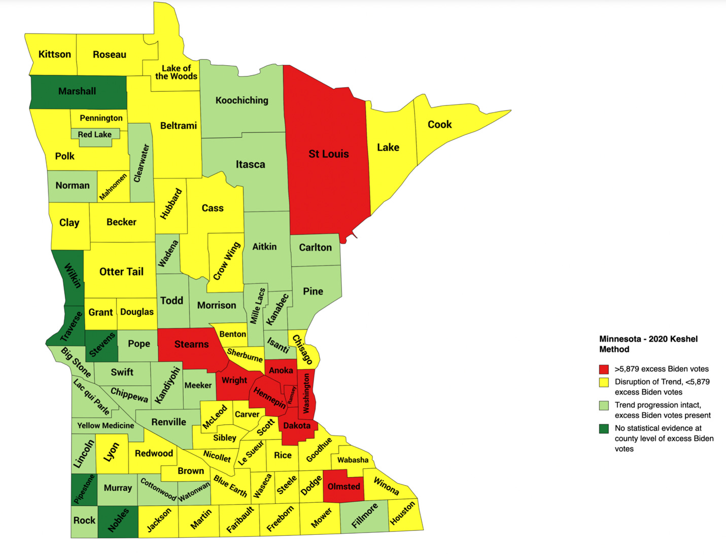 You know how I know Minnesota ran a corrupt presidential quasi-election in 2020? I can prove it with numbers, as I’m known to do, but my two favorite examples are behavioral examples. First, President Trump campaigned heavily for Minnesota in 2020 after only missing out on its 10 electoral votes by 1.5% in 2016. He didn’t need Minnesota to win given that it lies consistently left of Pennsylvania, Michigan, and Wisconsin, which would have given him a winning margin in the Electoral College anyway but went for it to put Biden on the defensive. Somehow, when all the ballots were counted, he lost the state by more votes than Mitt Romney did in 2012, and by only a slightly decreased margin of defeat as a percentage.