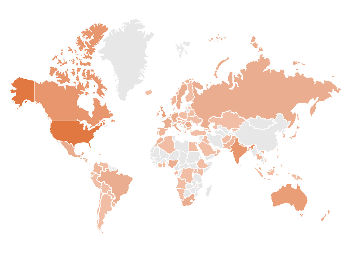 On Easter Sunday, I mentioned the size to which my Substack audience has expanded in just three years. Readers in 120 countries receive Captain K’s Corner, as you can see below on the platform map generated for me.