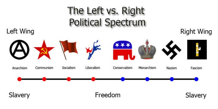 Where to even begin? Nazism is not a right-wing philosophy, but rather a left-wing one (National Socialist German Workers’ Party) governing by totalitarian means, but holding traditional social values, as well as abhorrent ideological views that espouse genocide and eugenics. Fascism can be either right-wing or left-wing, and anyone with eyes and ears, and perhaps an IQ above 90 can tell you just how free the ideologies of liberalism and conservatism, or better yet, the Democrat and Republican parties, have made the American people (sarcasm intended).