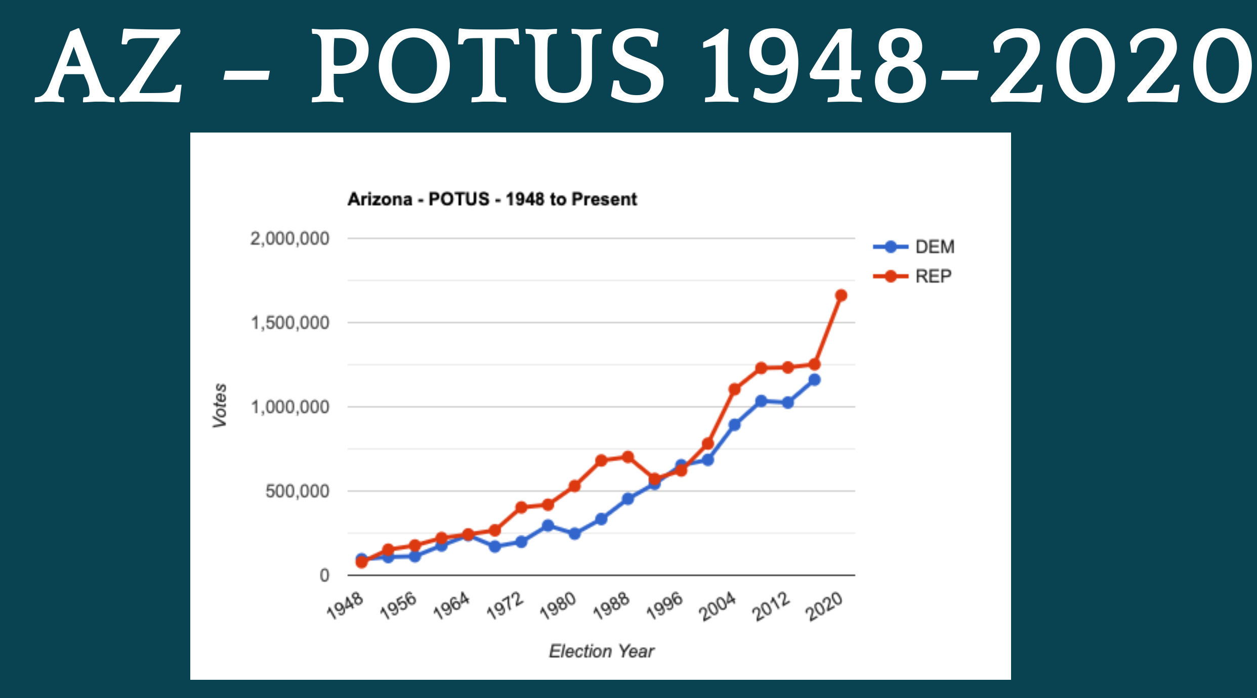 I moved on to 2020, and the curious election in which Donald Trump topped all Republican records in a Republican stronghold only to lose the state for the second time since 1952, and Maricopa County for the first time since 1948 (despite winning Maricopa County in 2016 with fewer votes than Mitt Romney had four years prior, despite population growth in the county).