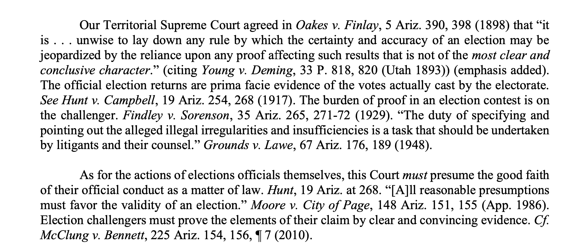 Throughout the history of Arizona, the bar to overturn an election on the grounds of misconduct in this State – or Territory – has always been a high one.