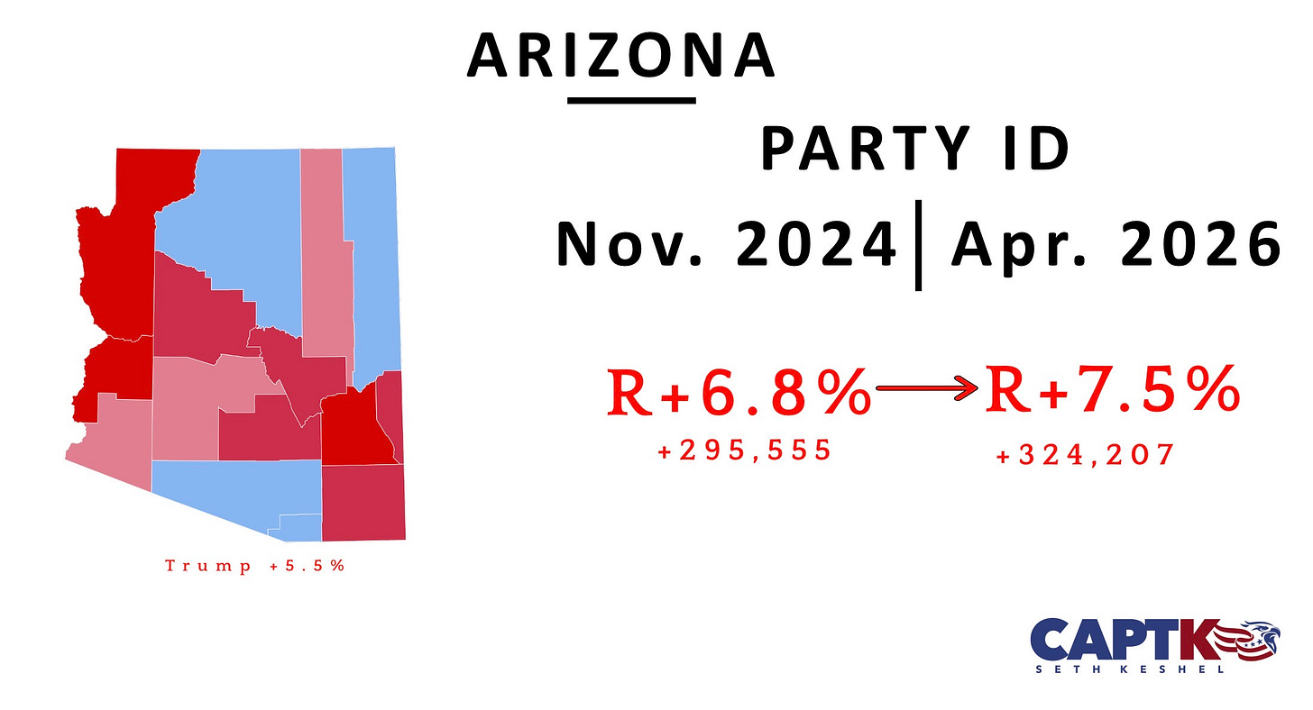 My unofficial numbers for Arizona registrations include constant updates for Maricopa and Pima Counties, which I have access to. We will likely receive a Secretary of State update soon (perhaps as early as this month) to paint a full picture of the statewide trend, so things won’t be as negative as they appear to be on surface level here given the trends in the outlying 13 counties.