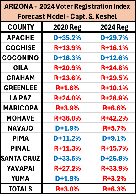 Arizona - Trump v. Harris Voter Registration Index Forecast Model