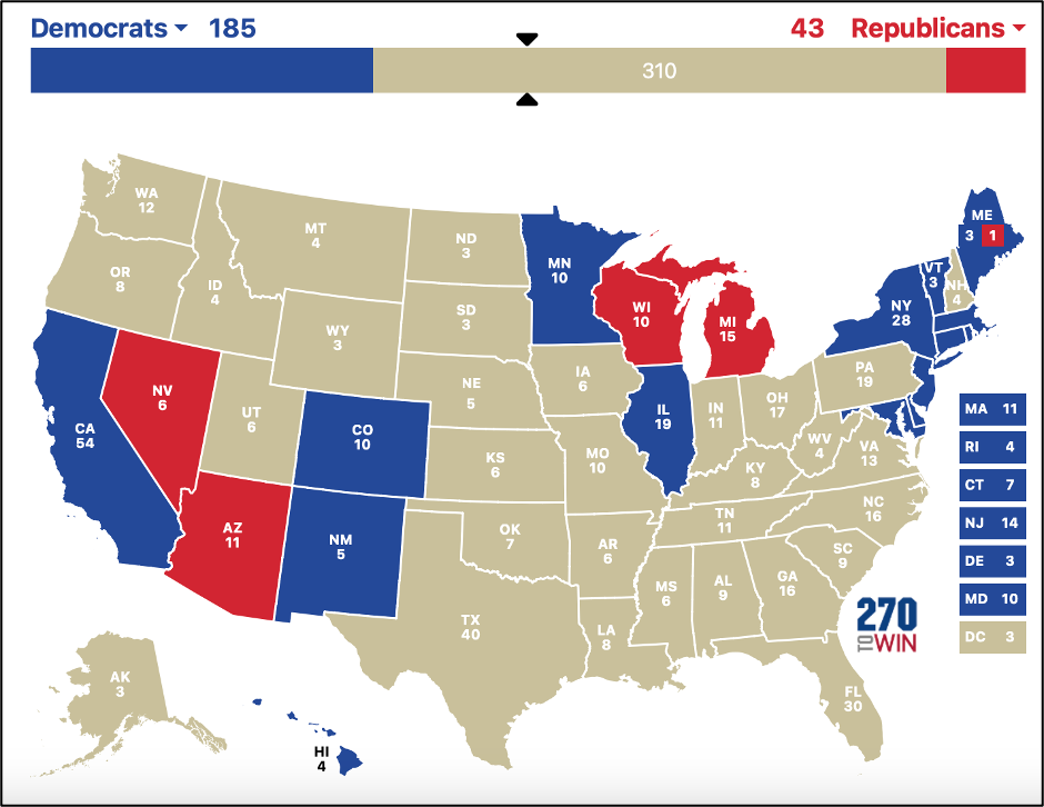· 5 states (Hawaii, California, Nevada, Colorado, and Vermont) in the suit practice Universal Mail-in Voting (UMV states went 91-12 for Harris in November)