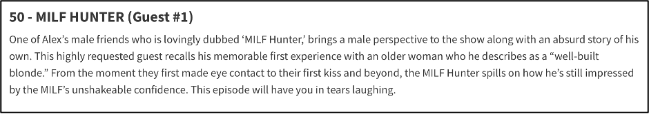 For the curious, here is a list of their most popular episodes.
