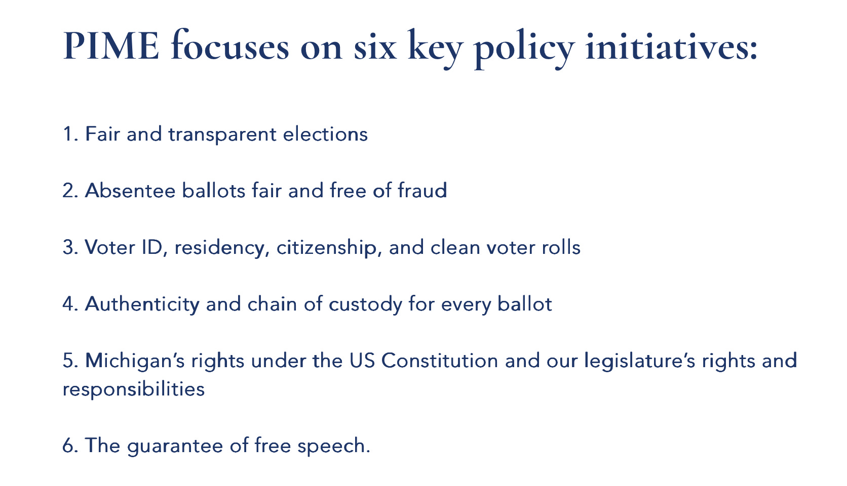Today’s post brings some exciting news. I have been brought on as a special advisor for Pure Integrity Michigan Elections (PIME) to collaborate with some of the best minds in the election integrity world. Chairwoman Patrice Johnson has done outstanding work to build multiple organizations into highly respected powerhouses that threaten Michigan’s very prevalent electoral corruption, and PIME is laser focused on the following six items:
