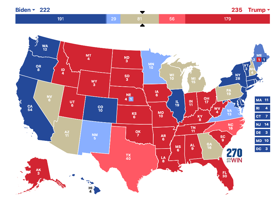 SAFE ELECTORAL VOTES (likely to be decided by 10% or more; subject to fall within 10% as campaign progresses, but highly unlikely to flip parties)