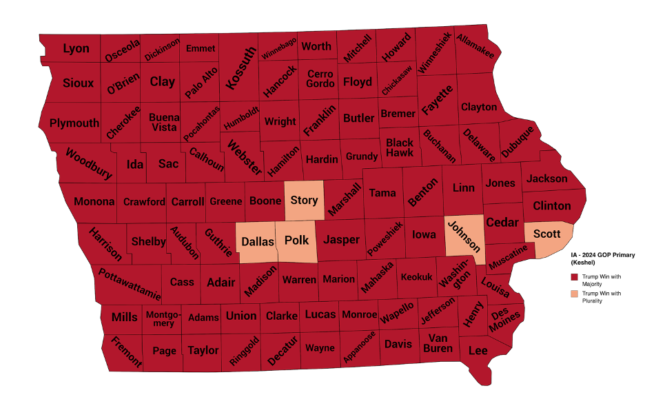 Most Likely counties for a Haley victory: Story, Dallas, Johnson