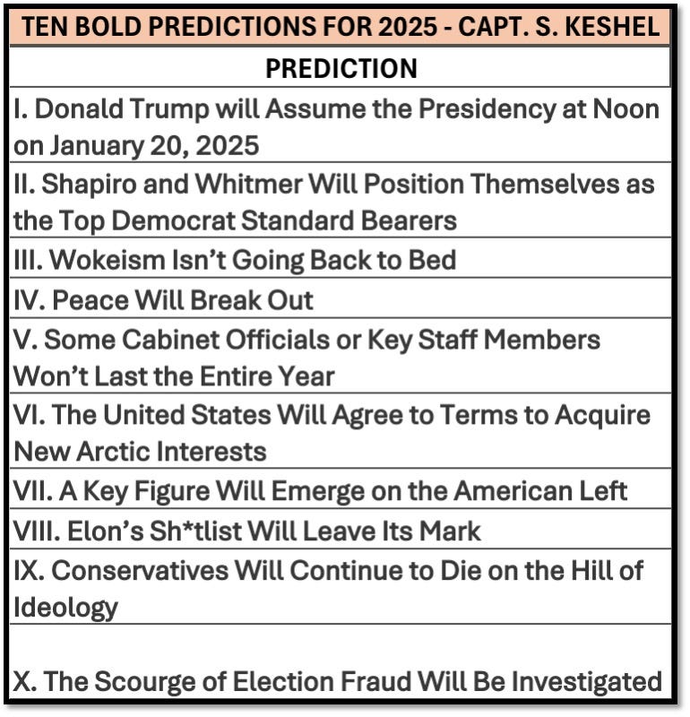In what has been an annual exercise in forecasting accountability, which is much needed for many prominent prognosticators, it is now time for me to roll out my Ten Bold Predictions for 2025.