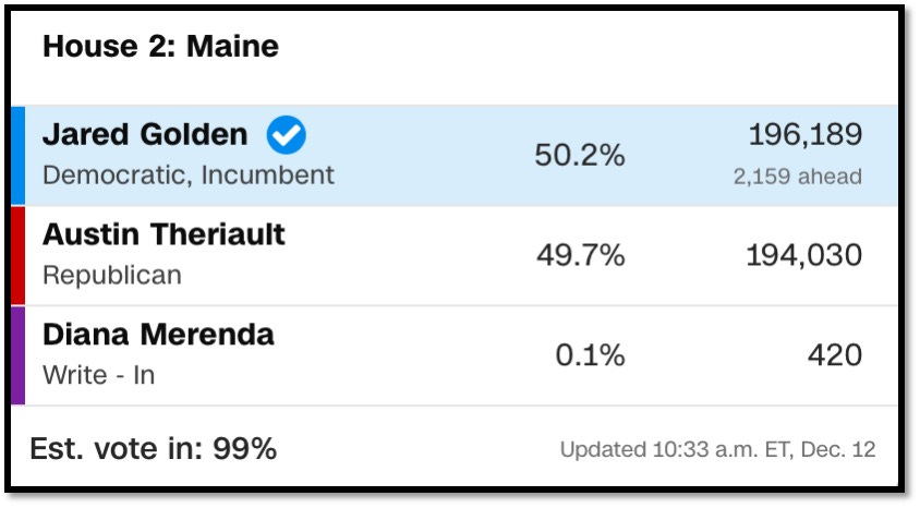 ME-2 is a DECISIVE seat currently held by a Democrat. Golden is retiring from Congress, and former Governor Paul LePage is running for the seat. I like the odds for a Republican flip as long as Democrats don’t pick up wave momentum, even though Maine has, by far, the worst elections (including Ranked Choice Voting) in all New England. Trump carried this split electoral district in all three of his runs.