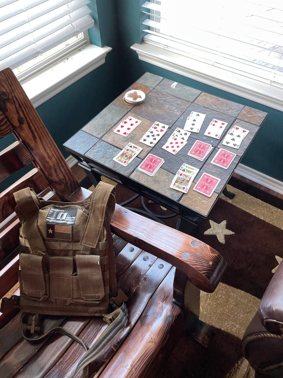 Leaders know the phrase, “when in charge, take charge.” That is exactly what my new roommate did. One day, I saw him getting ready to go out on a run, and I told him I could really use his help getting my PT score up. I had gotten away from the fringe in which I could possibly fail a PT test, but again, I wasn’t kicking ass. Kyle made perfect 300s, running two miles in the low 12-minute range, and maxing out the two muscle events to the point that his score climbed past the 300 maximum score when the extended scale was applied, as it was for the Ranger Challenge team Kyle was anchoring. He came back in from that run, drenched in a nasty Southern sweat, carrying a deck of cards.