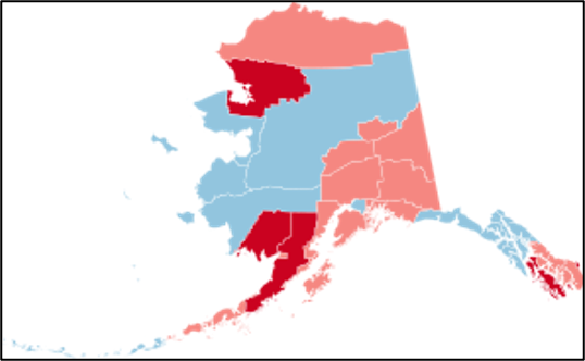 Alaska receives a Grade of 3 – Elevated Concern – based on its reckless election laws, such as no-excuse mail-in voting, acceptable ballot harvesting, Ranked Choice Voting, and Automatic Voter Registration, which are among the worst of any GOP Presidential State, including Utah. Census area returns suggest that the Ranked Choice Voting repeal was likely defeated illegitimately by a relatively small quantity of bad mail-in ballots.