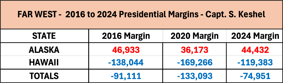 This portion of the 2024 Election Compendium focuses on two states in a region I am referring to as the “Far West” – Alaska and Hawaii.