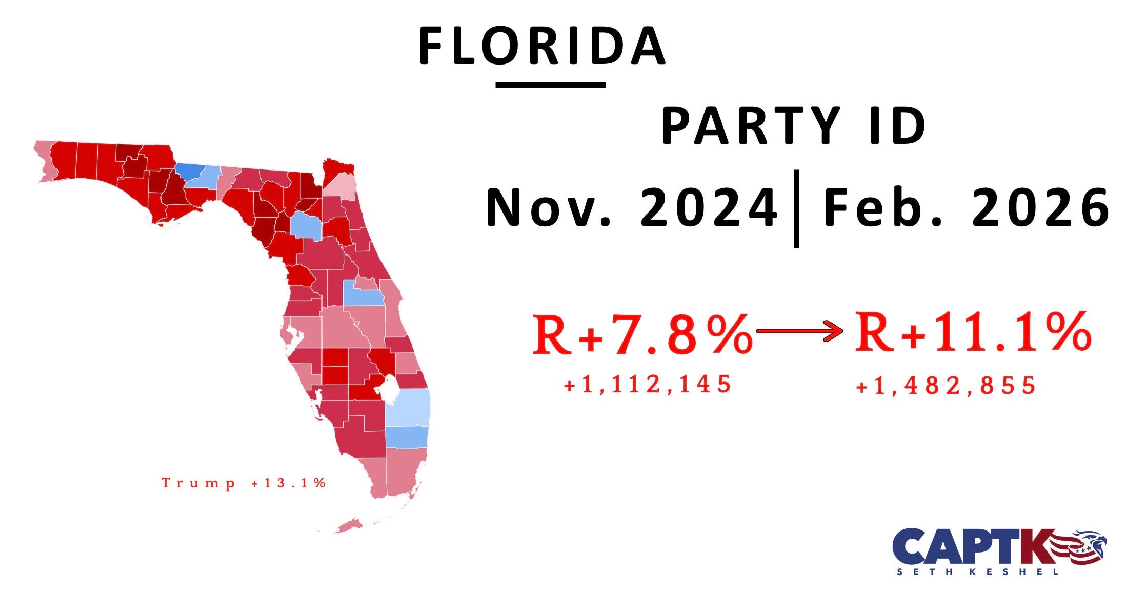 Just as I begin to think Florida’s Republican surge has to slow or end at some point, it explodes enough to push Florida over R+11. Word on the street is that the statewide gutting of Democrat memberships came from a purge in Broward County, the election fraud capital of the Sunshine State. Florida’s transformation is an astonishing political phenomenon that should put everyone at ease about blue state transplants.