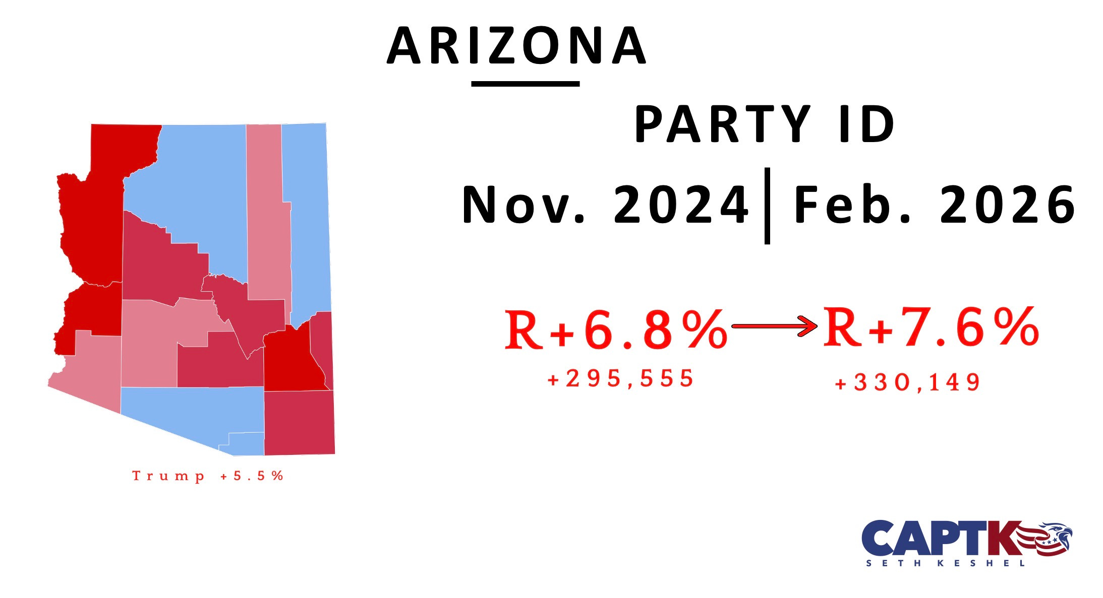 Republicans now enjoy a voter registration advantage almost exactly twice as large as it was when Katie Hobbs administered her own gubernatorial election as Secretary of State and “beat” Kari Lake by 17,117 ballots in a Venezuela-style election almost four years ago.