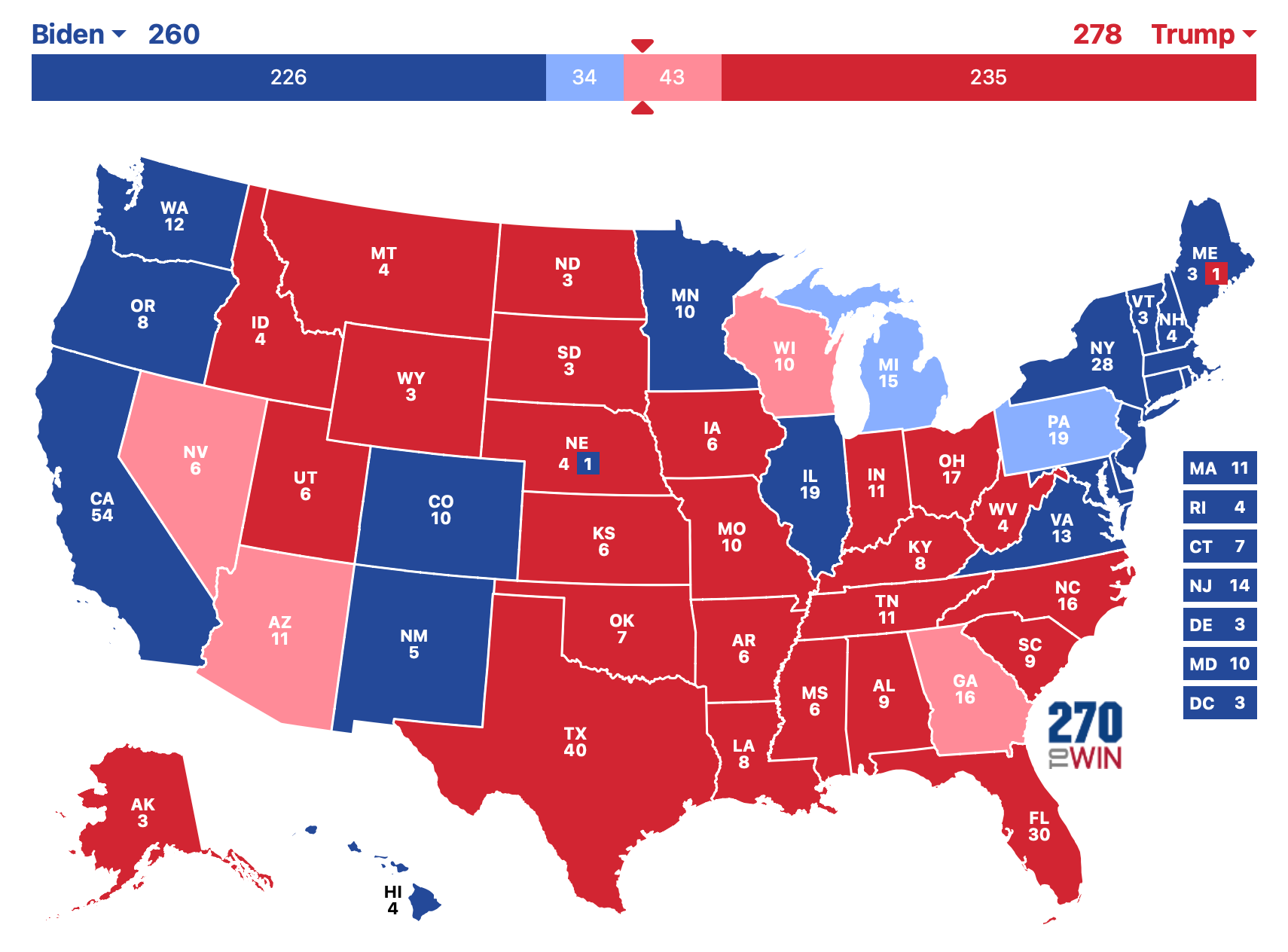 The first scenario, which falls under the two most likely scenarios outlining a Trump victory, sees President Trump capturing the White House in similar fashion to his victory in 2016.
