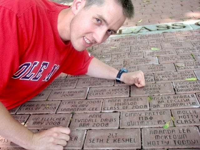 I was in town to begin with because today I’ll be part of a ceremony celebrating the 20 year anniversary of the Ole Miss Rebels SEC Tournament Championship team, which featured several future Major Leaguers and of which I was a member. That was the first major building block of my analytical course of study, a full decade before sabermetrics and rigorous analysis of collegiate baseball became commonplace. As soon as I hit “publish” on this article, I’m going to take Rachel and two of my step-kids down to “The Grove,” where many Ole Miss alums remember darker days for the football program. That hallowed ground is the birthplace of the phrase “we may not win every game, but we’ve never lost a party.” I have my own brick there, which my Dad sponsored as a graduation present in 2008: