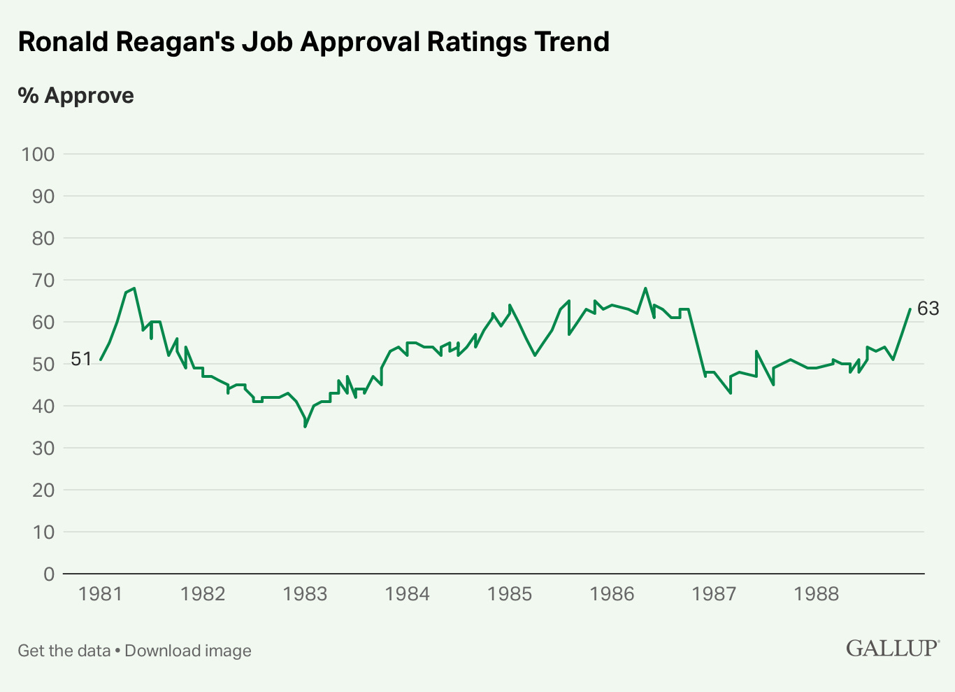 Those mired in doom and spreading messages of permanent doom for the MAGA coalition conveniently ignore that Reagan got things so squared away in a day and age with a much more volatile electorate to win 49 states in 1984. He would have won all 50 had his opponent, Walter Mondale, not held home field advantage in Minnesota, which Reagan dropped by a razor-thin margin. Reagan hadn’t even hit rock bottom by 1982 midterms - he landed a 35% approval rating in early 1983 before beginning his climb. Reagan’s 49-state landslide and stunning 63% approval rating should have been enough to make sure the GOP crushed Democrats around the nation in 1986, right?