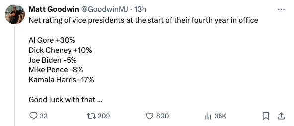 Matt Goodwin points out that Harris is the most disliked among Vice Presidents in political history, especially in modern times: