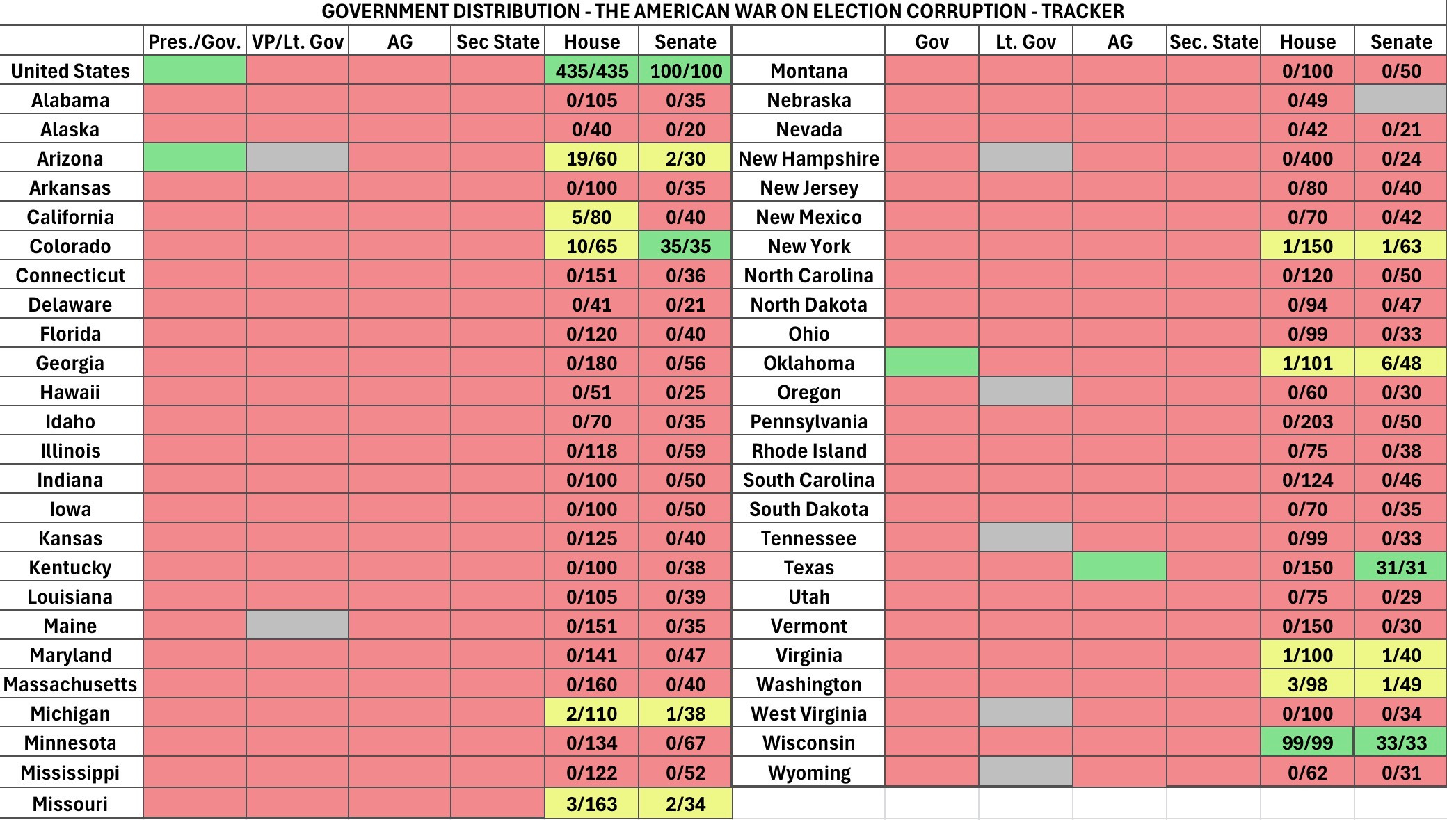There has a been a strong response to my idea for outfitting as many key state officials and legislators as possible with The American War on Election Corruption, and I will have some exciting news on the responses soon. If you want to sponsor copies for your delegations, contact me so I can update this chart: