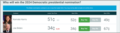 PredictIt is showing Harris at the betting favorite over Biden as of this morning, a number that has swung drastically in just five days since President Trump’s shooting. We will know almost certainly within the next week what is going to happen here, because if they don’t do what they need to do soon, they will start risking electoral votes in all the disarray.