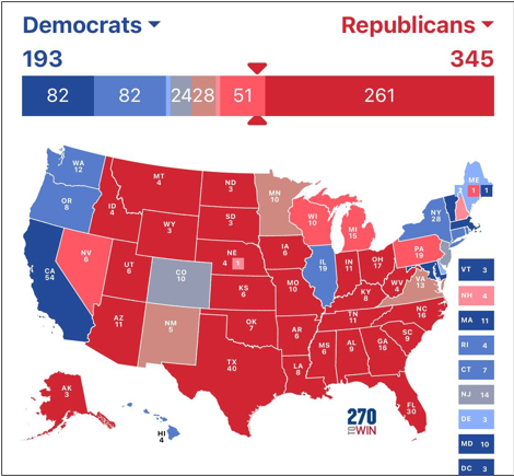 Looking at the map and the current political climate and legislative moves CA Gov. Newsom made, I sense there is a chance CA would be more purple-even deep magenta not-quite-fuchsia- than deep blue. The chaos the DEMs brought to themselves, their constituents--aided by their allied news agencies and the admin classes of 3 or 4 letter agencies--are in full display. The democrat party is NOT the democrat party of Kennedy or "Reagan Democrats." The registered D's seeing the splinter groups(pro HAMAS, pro-UKR/war, CRT/DEI LGBTQIA+ zealots) "identifying themselves" or seemingly aligning with the D party is causing the everyday D to bail from the party. Great article sir!