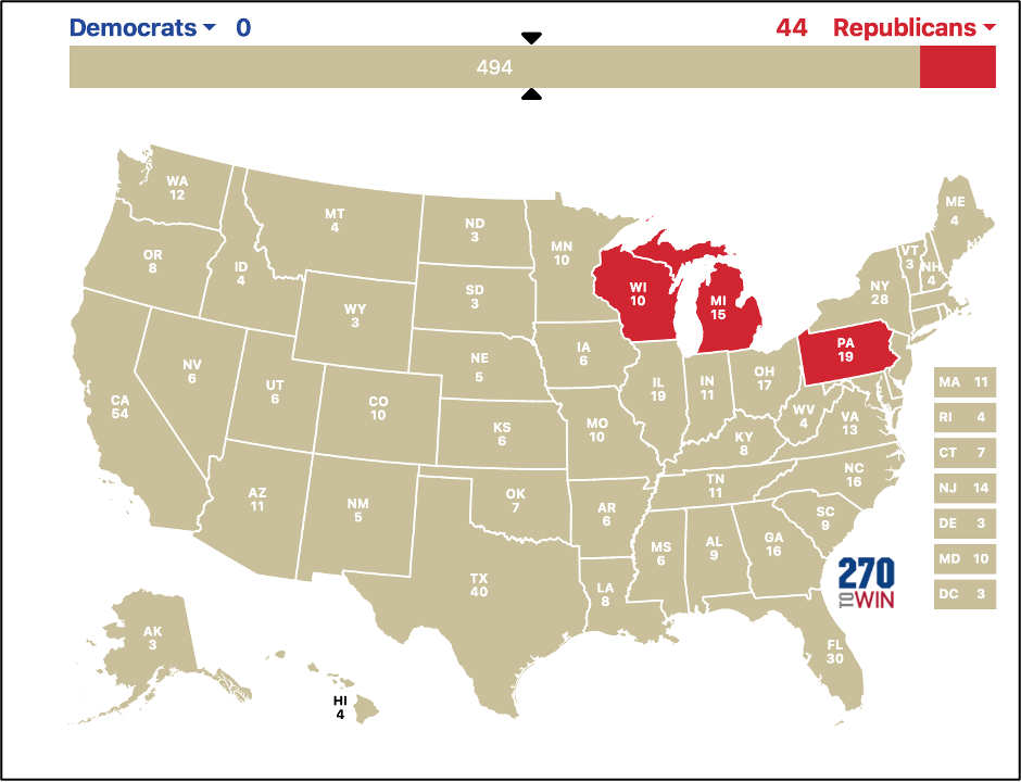 Pennsylvania, Michigan, and Wisconsin. Electoral gold. These states will most likely be worth 42 collective electoral votes, or fewer, once the census readjustment takes place in 2030 (or earlier if fixed). Sorry, Minnesota, but we have to concentrate our resources here.