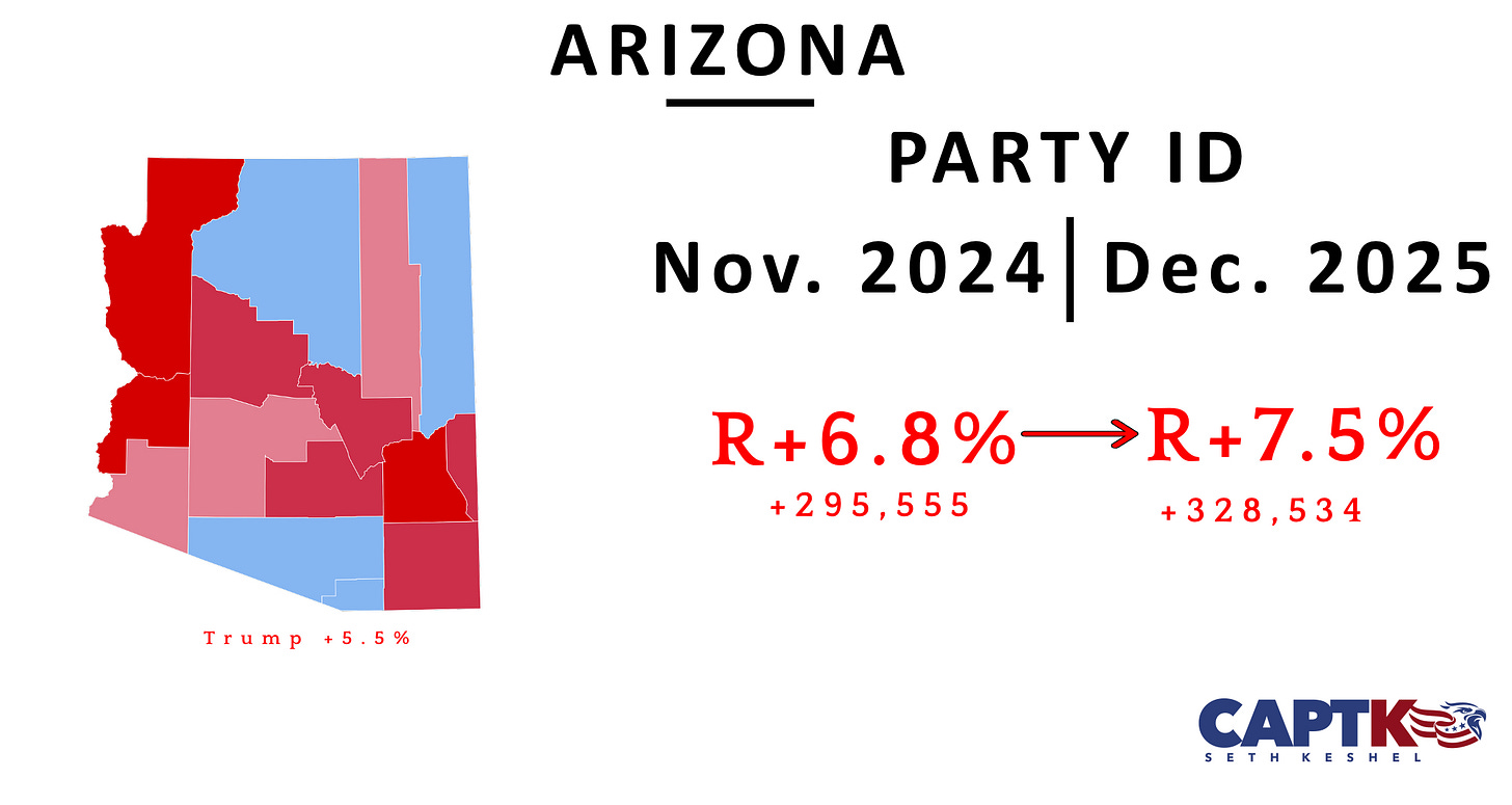 Today, party registration in Arizona is R+7.5%, or +328,534: