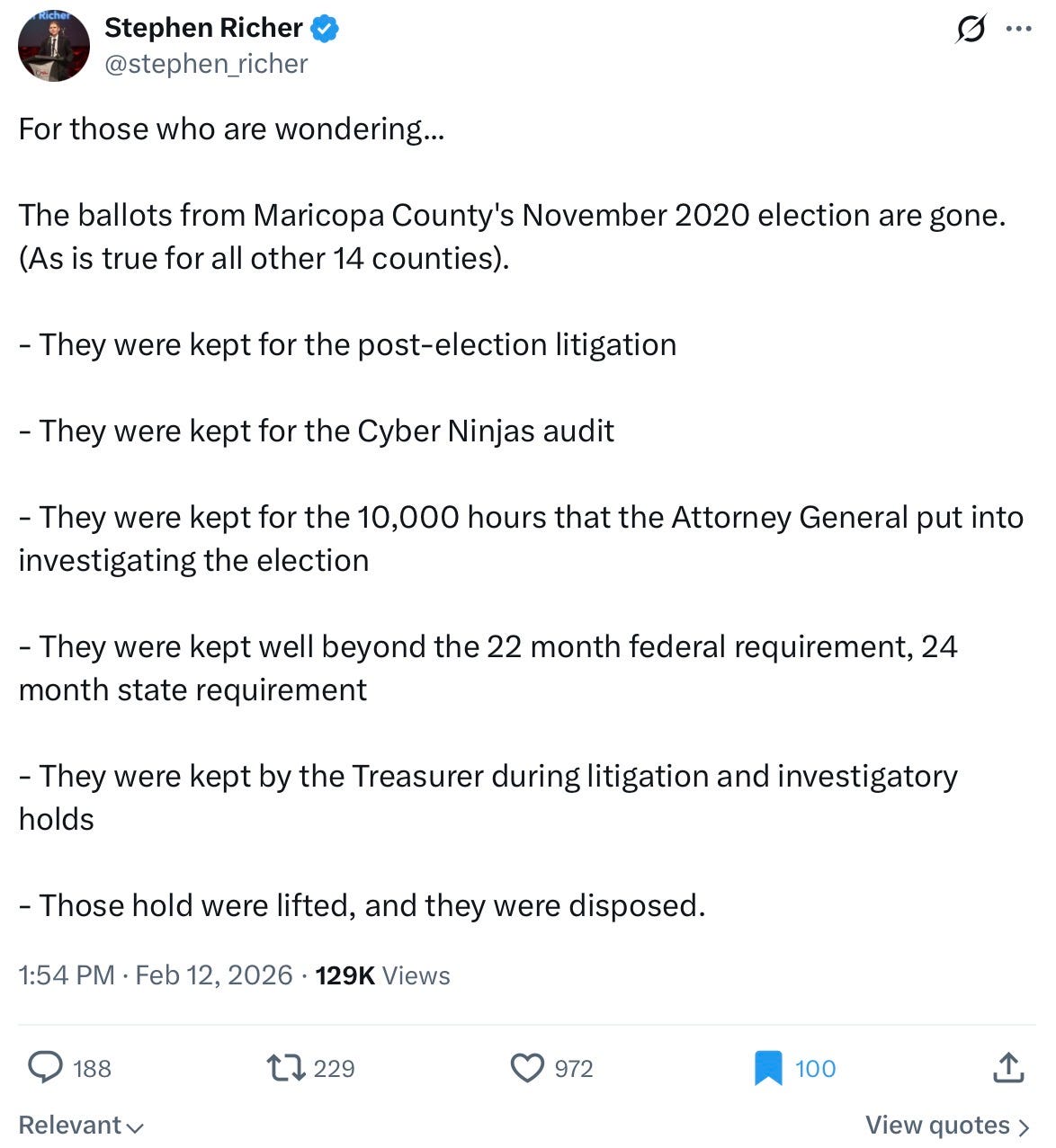 Richer, the drama-queen Maricopa County “Republican” recorder ousted by Justin Heap, didn’t actually oversee the 2020 election in the county. He won his race for that office against another notorious character, Adrian Fontes, who became Secretary of State in an election Richer did handle (countywide) two years later. The two of them have done a phony Uniparty dance for years pushing back against those of us who can tell Maricopa County is arguably the Mordor of the election kingdom:
