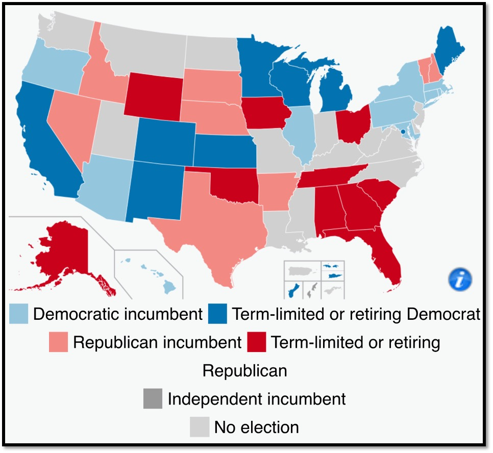 Control of the state’s top office has significant political implications for that state and by extension, the country.