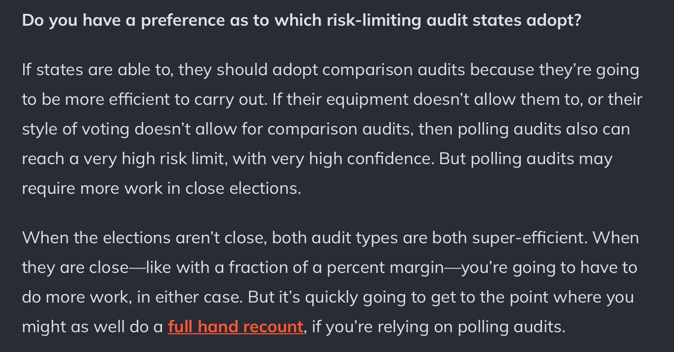 4) Furthermore, any solution that doesn’t support fully eliminating not only machines (ballot marking devices, scanners, tabulators, electronic poll books), but associated software, from elections leaves open the possibility that elections are going to be hacked or otherwise compromised, and it doesn’t matter whose technology is in play. In my second of 10 Points to True Election Integrity, Ban All Electronic Elections Equipment, I eliminate all such vendors from the market, because voters should be voting on hand-marked, hand-counted paper ballots that are voted in-person and counted at the precinct. Halderman seems to support tweaking the voting systems rather than eliminating them completely in favor of primitive, yet much more secure, systems.