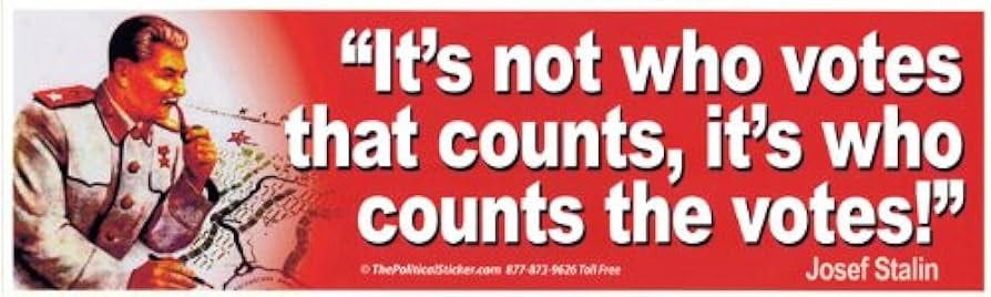 Returning to a favorite topic, history, I must make it clear that most scholars don’t believe Joseph Stalin uttered the famous and dark election-related quote, “It’s not who votes that counts, it’s who counts the votes.” That may be the truth, but fictitious or not, that is a 100% accurate quip that underscores the ultimate problem in our elections today, which is a complete lack of transparency and accountability that allows election fraud to occur downstream and throughout a lengthy early voting season. Consider your last trip to the bank, which ultimately determines how much cash you have to your name. You probably brought cash or checks with you, or a combination, and the teller stood right across the desk from you and counted your cash from big bills down to small bills aloud. The intake form back to you contains a listing of everything the teller counted, and once agreed upon, that amount is credited to your virtual account. No one would dump piles of cash off in large quantities, then go back out for more, without having confirmation that the totals were accurate, and that nefarious activity wasn’t occurring within the bank, authorized by its top officers.