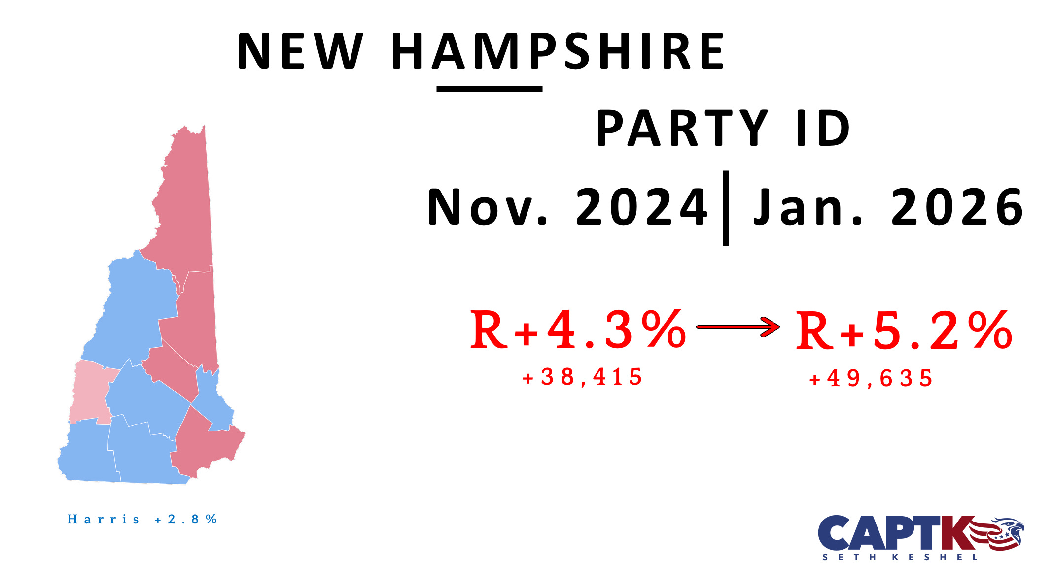 The Granite State remains the most likely Republican flip for the 2028 presidential election, and has several important races on the ballot in 2026, like a U.S. Senate seat and the battle for NH-1, which Democrat Chris Pappas will vacate to run for that Senate seat.