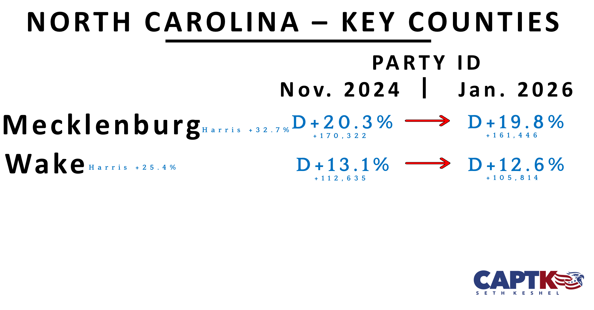 Five counties, all won heavily by Trump, report fewer total voter registrations than they did at the time of last month’s report; therefore, my assumption is that the Democrat pickup is based largely on voter registration maintenance in the deep red counties, disproportionately impacting the dominant party, more than it is a statewide reflection of diminishing Republican strength.