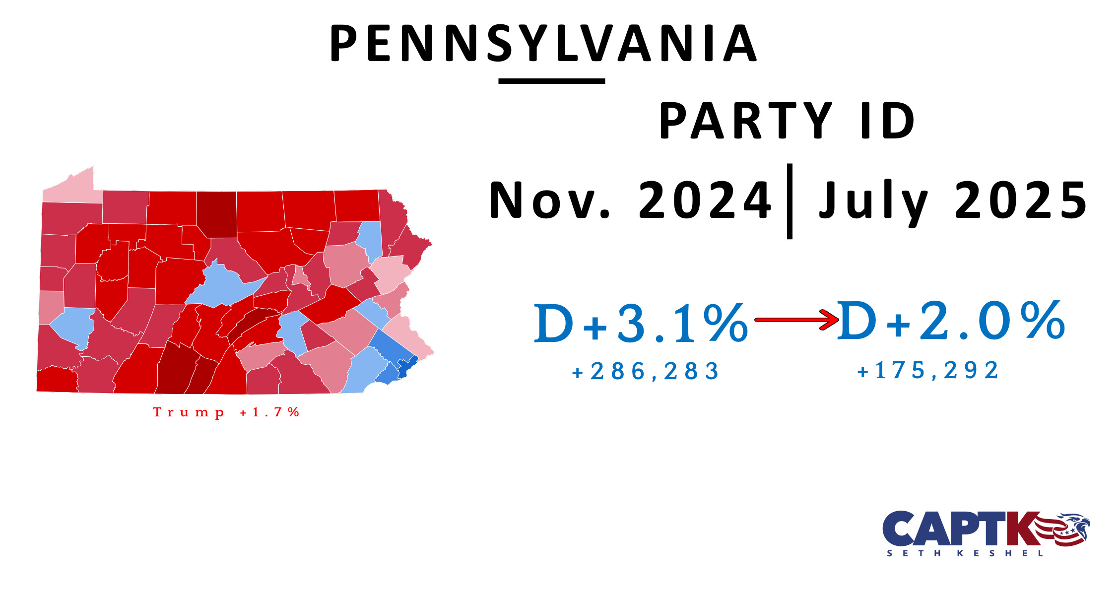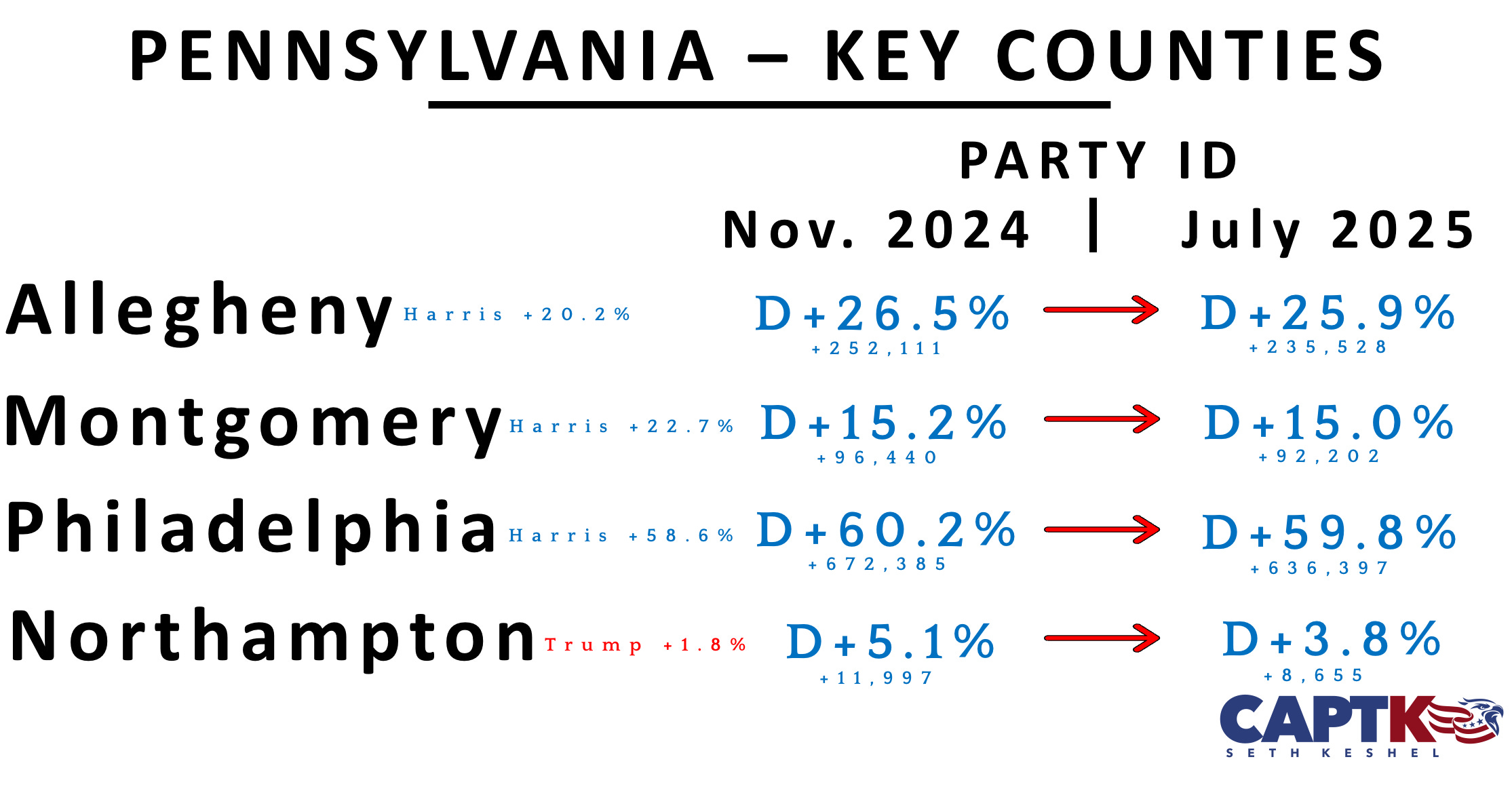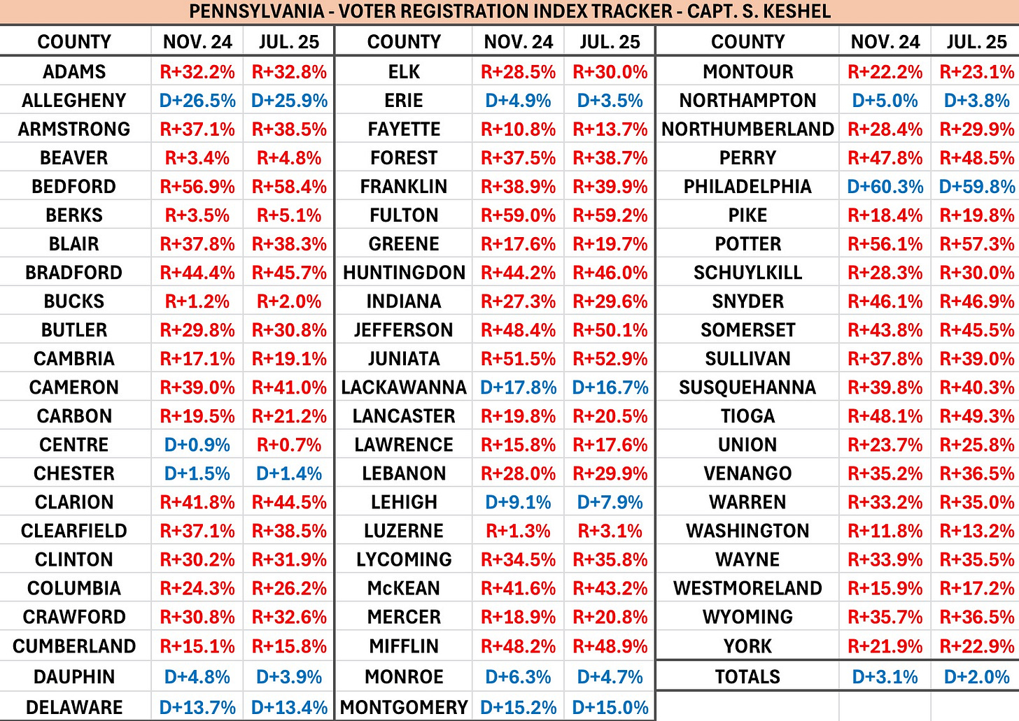 Incredibly, 67 of 67 counties in Pennsylvania are more Republican or less Democrat than they were for the November 2024 election.