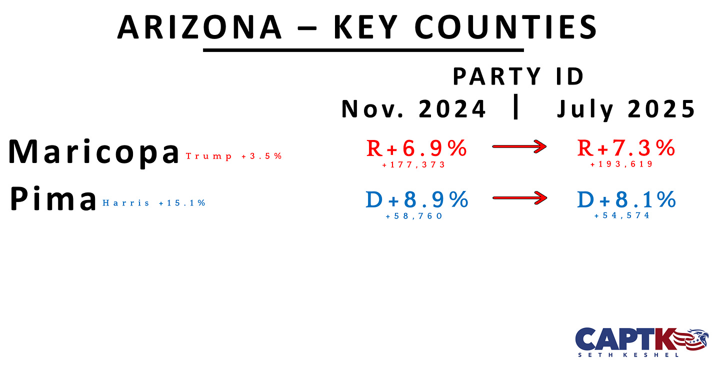 15 of 15 Arizona counties have a Republican registration lean since November 2024 as the state moves back into the reliably Republican category in presidential races.