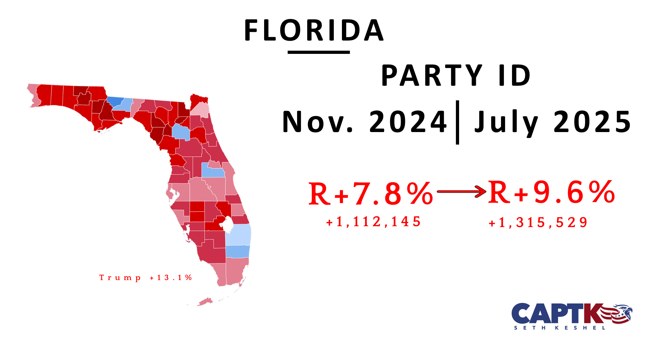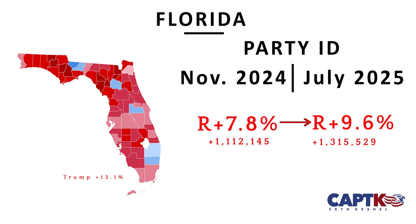 Incredibly, Florida continues to expand its registration advantage rapidly, now approaching R+10% statewide.