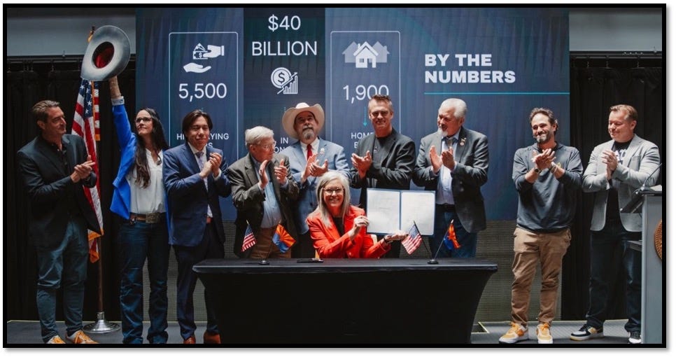 I have written extensively in this newsletter about Hobbs’ third-world election victory over Kari Lake in 2022, which also squashed every Republican top-of-the-ticket candidate except for the Treasurer, Kimberly Yee. Abraham Hamadeh, who “lost” by 280 ballots to vindictive Attorney General Kris Mayes, moved on to run for the U.S. House and win in 2024, and Lake ran for Senate in 2024 and was closing the gap before the big mail drops started turning hard in favor of Ruben Gallego, who was recently spit-roasted in Iowa as he was likely testing the waters for the 2028 presidential race.