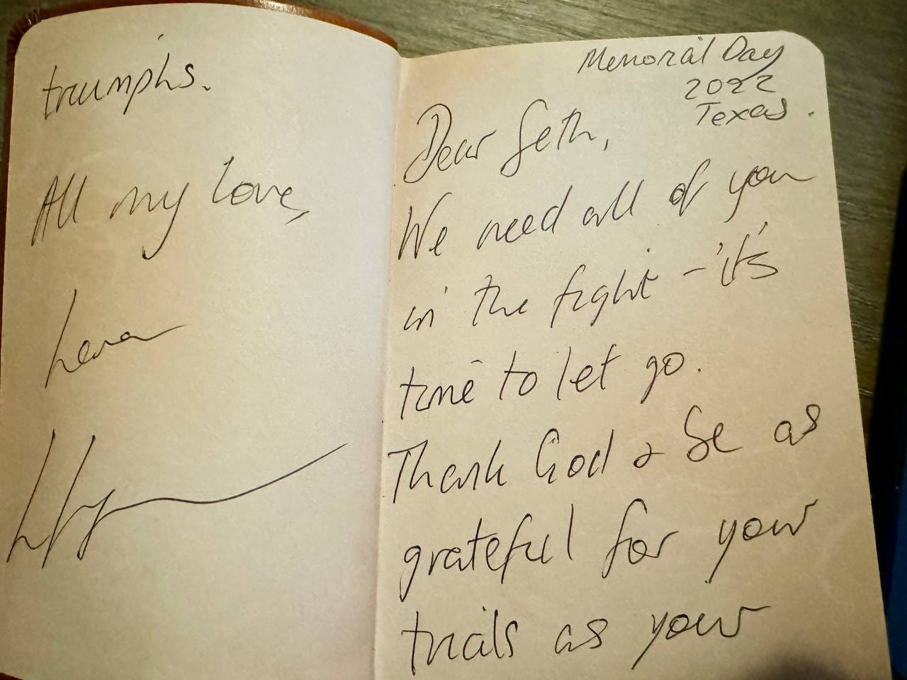 This video highlights what transpired that night, and it is safe to say that I am flattered someone with such a pivotal role in the worldwide fight for freedom had these things to say about me. I visited her and Joe with my friend and battle brother Sonny over Memorial Day 2022, and she gave me this at a time when I needed it most, when I was trying to reassemble the pieces of a shattered personal life: