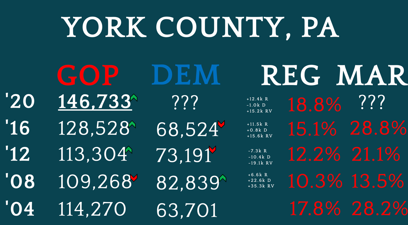 Trump came in 2,981 votes higher than what I would have considered his target number – at 146,733. Additionally, the county has an even harder Republican registration lean going into 2020 than it did in 2016, at 18.8% advantage, with a gain of roughly 12,400 GOP registrations and a loss of roughly 1,000 Democrat ones. That means we should expect Trump to win York County by more than 28.8%, and by more votes than he won by in 2016. Romney won the county by about 14,000 more votes than McCain in margin, and Trump won by about 20,000 more than Romney did. Here, knowing Trump’s 2020 vote total, party registration, and population, I would forecast Biden at 66,000 even, which is more than fair and less of a plunge than either of the past two Democrat presidential campaigns in the county. Trump at 146,733 and Biden at 66,000, with 4,299 other votes would give us 217,032 votes, or 9,003 more than cast in 2016, with Trump carrying the county by 80,733 votes, or 37.2%, in line with previous jumps based on registration trend.