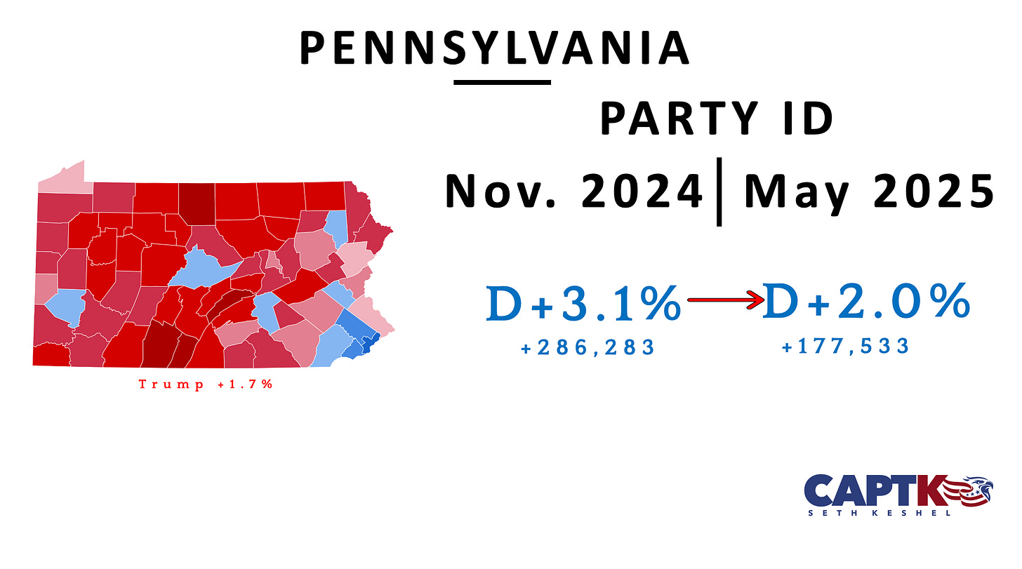 Now in the Trump administration’s fourth month, there are once again no tangible signs that Americans are rejecting MAGA or reacting against Trump’s policies. The state to watch here in this next month is Pennsylvania to see if it will get back on track with its Republican realignment, which I would bet is likely to occur now that their municipal primaries have concluded. While these seven states are the most important for analyzing the 2028 election, I will likely include a handful of other states beginning next month.