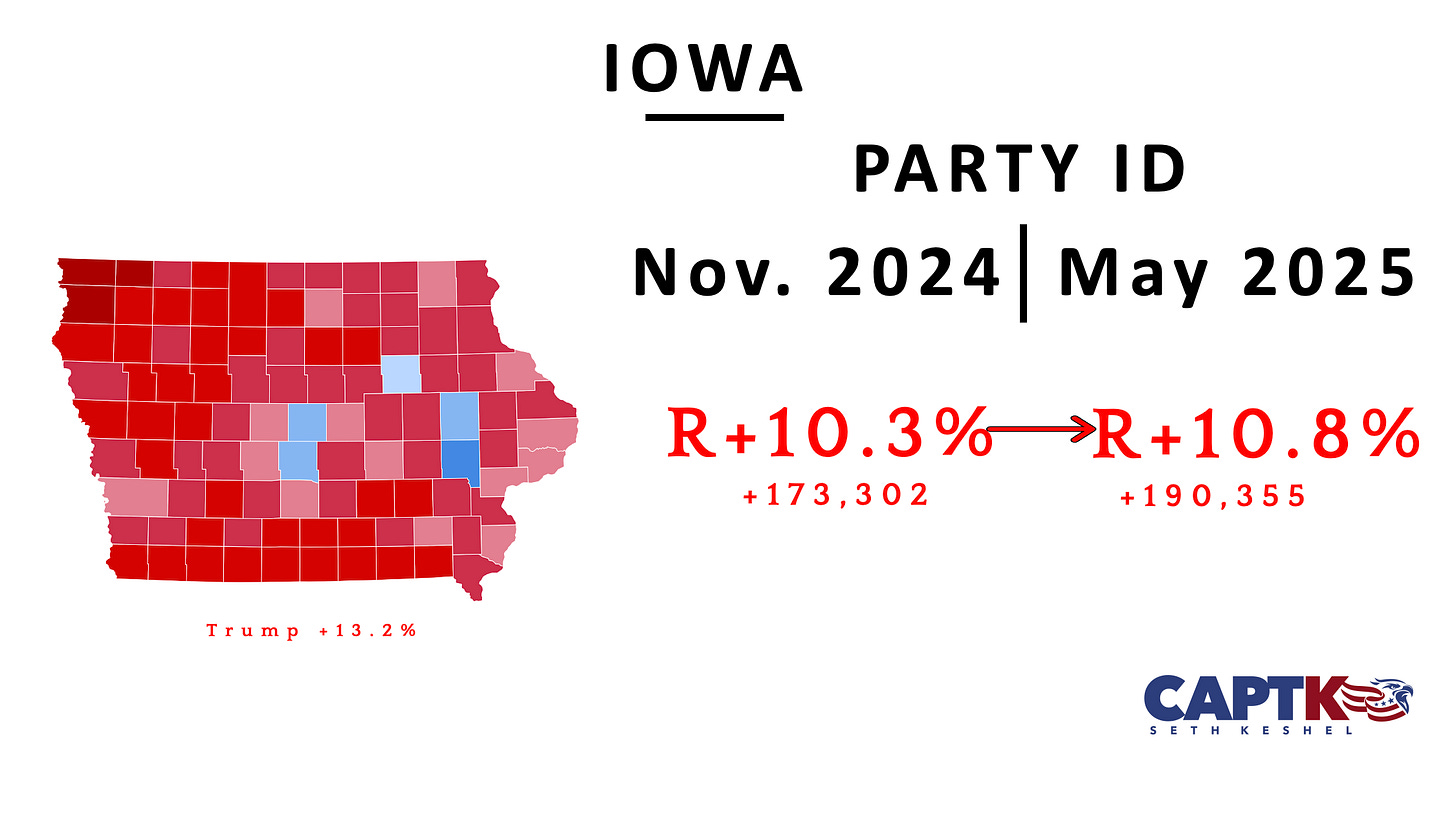 With maintenance complete, Republicans continue to build their lead in Iowa, which gives us not only good signs for the tight U.S. House races to come in 2026, but for the fate of the Upper Midwest (primarily Wisconsin) in the 2028 race.