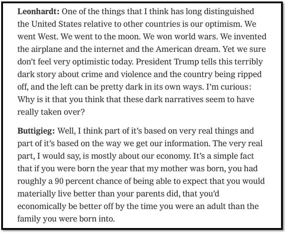 I will break down a few segments of this interview considering what Buttigieg and his interviewer have to say or are leaning into: