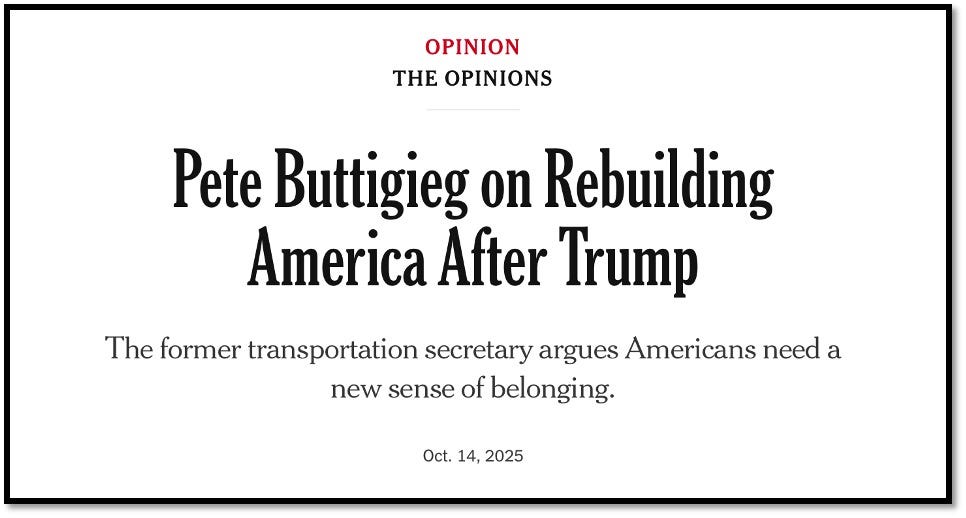 Before I dig deep into today’s subject matter, I must also confess to you that I am temporarily a paying subscriber to The New York Times online. I am using it to source some content, like Trump’s huge lead on November 4, 2020, in Pennsylvania, in my forthcoming book The American War on Election Corruption, expected out in March 2026. I’m essentially doing what I’ve done for years now in using their own data against them to make my points. Yesterday, I noticed America’s most overrated mayor, Pete Buttigieg, penned an editorial that could have been written from the inside of any coffee shop in Martha’s Vineyard.