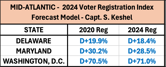 Author’s Note: This portion of the 2024 Election Compendium will focus on the Mid-Atlantic states of Delaware and Maryland, plus Washington, D.C. New Jersey, Virginia, and North Carolina will receive their own reviews.