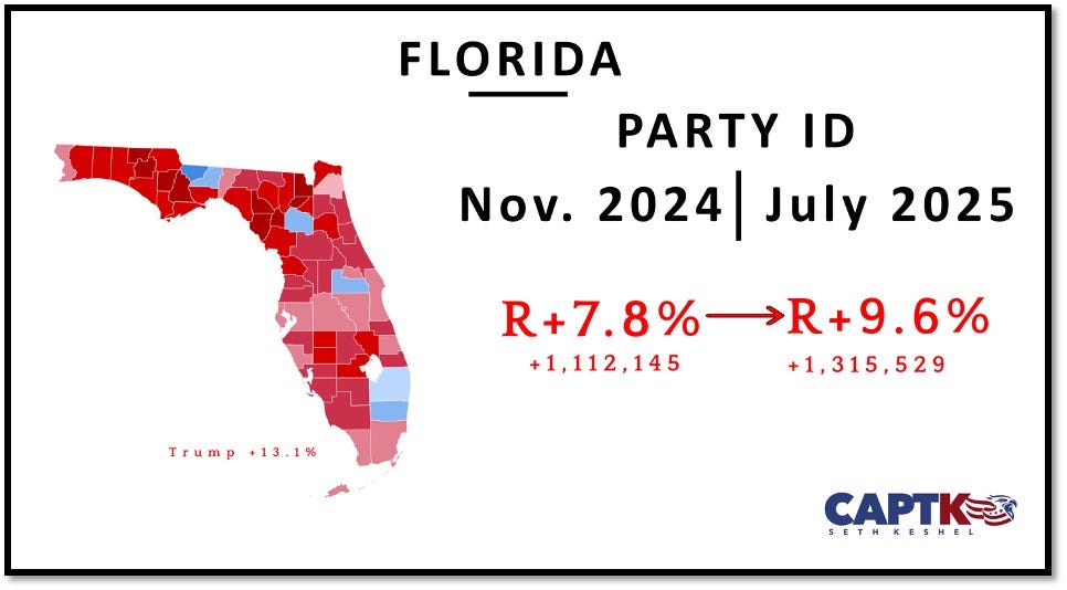 This research had made its rounds, including when I went on Sean Spicer’s show to discuss the magnitude of every single state tracking registration by party becoming more favorable to Republicans since November.