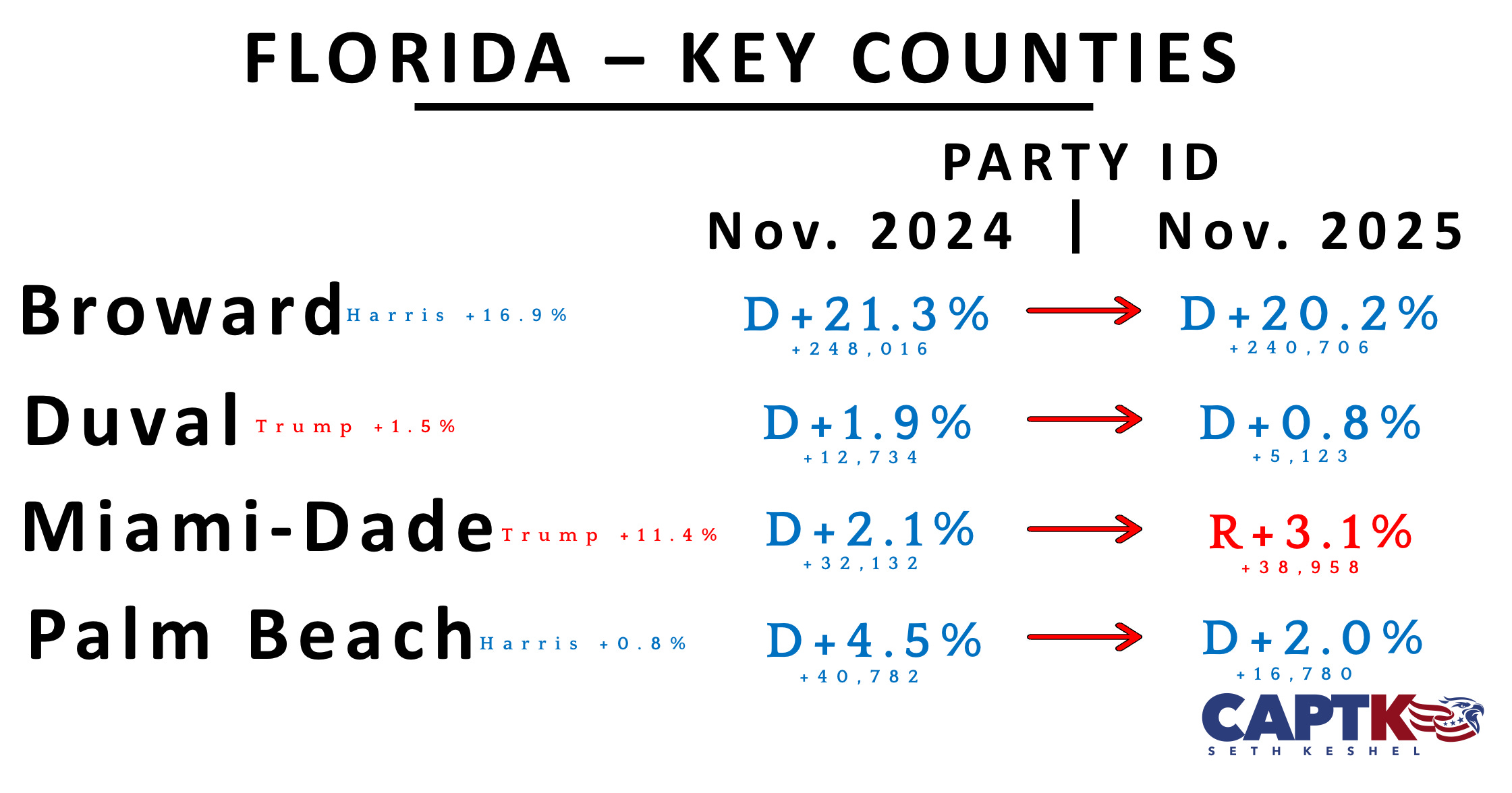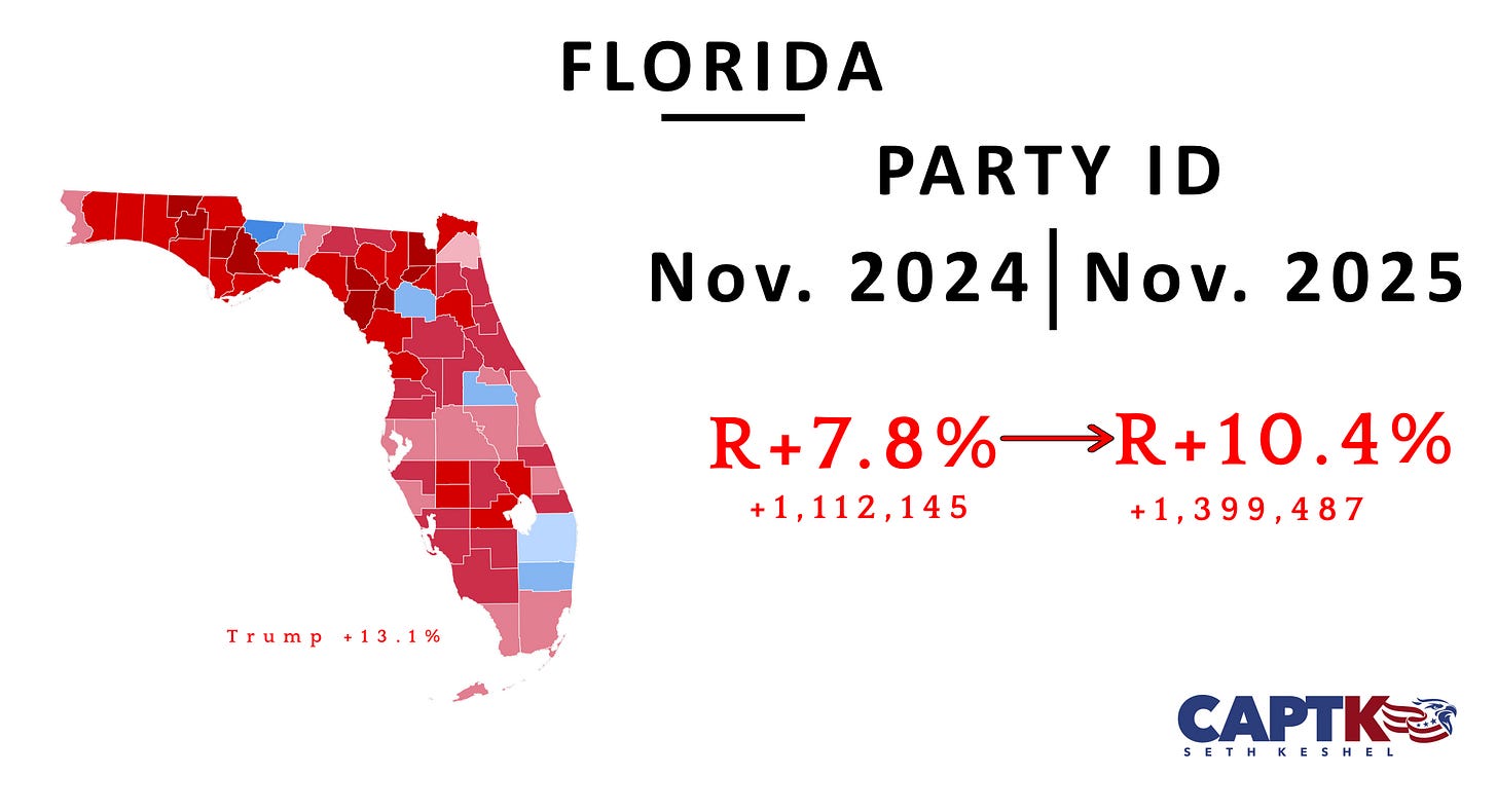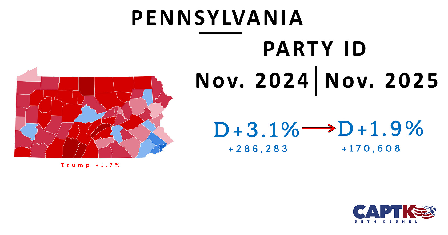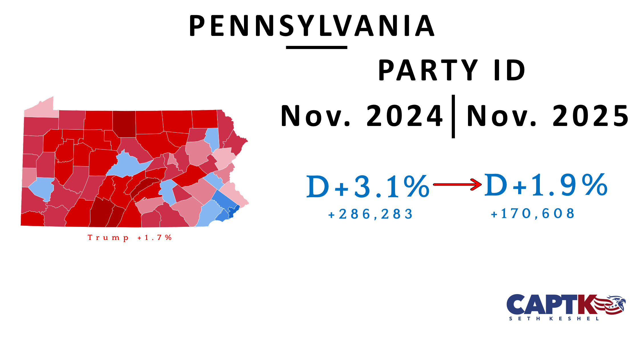 Democrats were hit hardest, resulting in a slight pickup from Republicans, who are closing in on a 50,000-registration lead, up substantially from 2024. This makes the state the most likely of any to flip away from Democrats in the 2028 presidential election and helps GOP chances of 2026 midterm success.