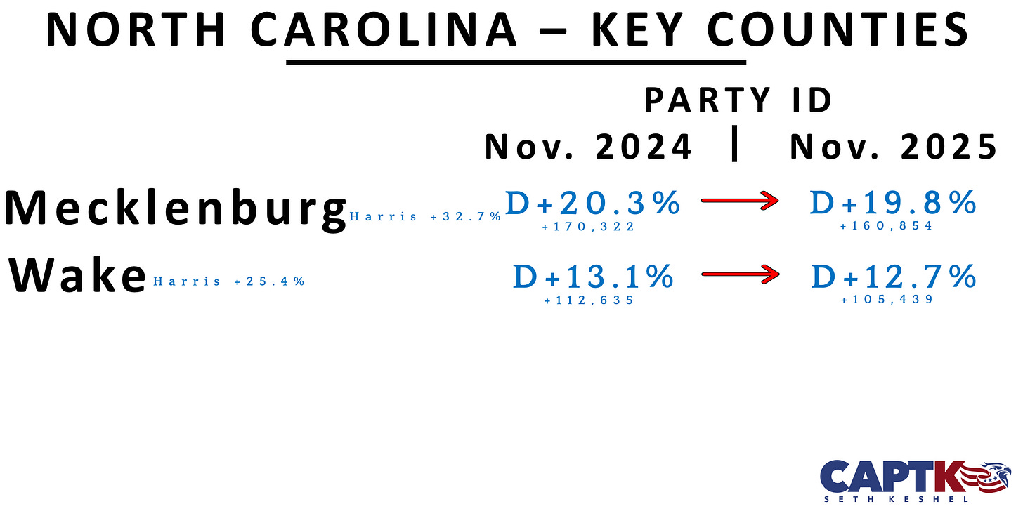 With former Democrat Governor Roy Cooper running for U.S. Senate, Republicans need all the help they can get. Both Wake and Mecklenburg Counties slightly favored Republicans last month in their shifts.