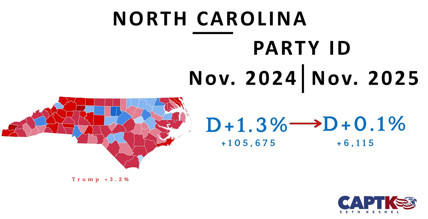 The next GOP presidential candidate, if these trends persist, should carry North Carolina by 5 or more points.