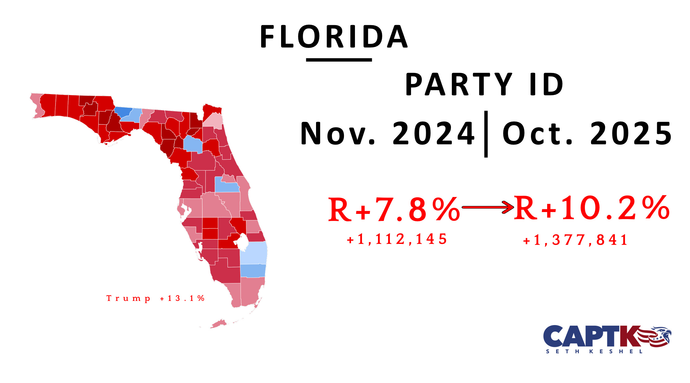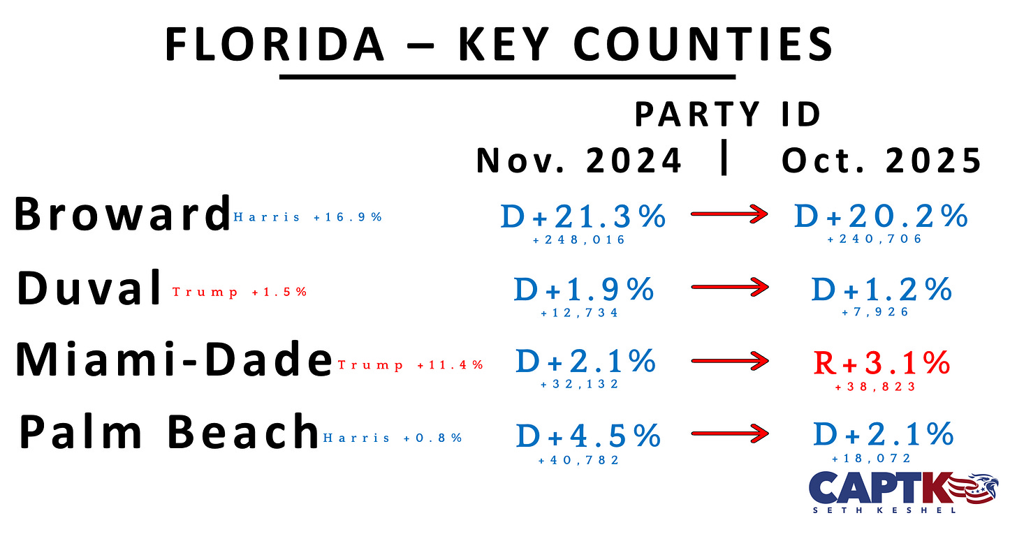 Florida had another huge month for GOP gains, with a large party gain pushing the Republicans past a net gain of a quarter-million since the 2024 election.